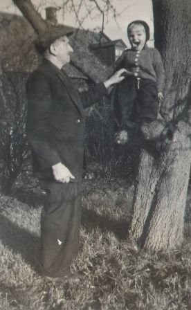 Bedstefars hjemmelavede drivhus i haven skolegade 51. Glasset var gamle "negativer" fra fotograf Pors i [...]Silkeborg, som var skrabet rene. Villy står foran. Starten af 1930erne.Læs mere...↑ |  Min bedstefars "berømte" pæretræ. Biledet her var i silkeborg Avis i 1938. Bedstefar [...]var dygtig til at pode. Her havde han podet en tjørn på et pæretræ, hvor han så ellers havde fået den idé fra. Tjørnen var stadig klippet som "balletskørt" i min barndom i 1960erne.Læs mere...↑ |  Frode og Bib (Anne Vibeke) Rasmussen, min onkel og moster. Årstal ukendt. |