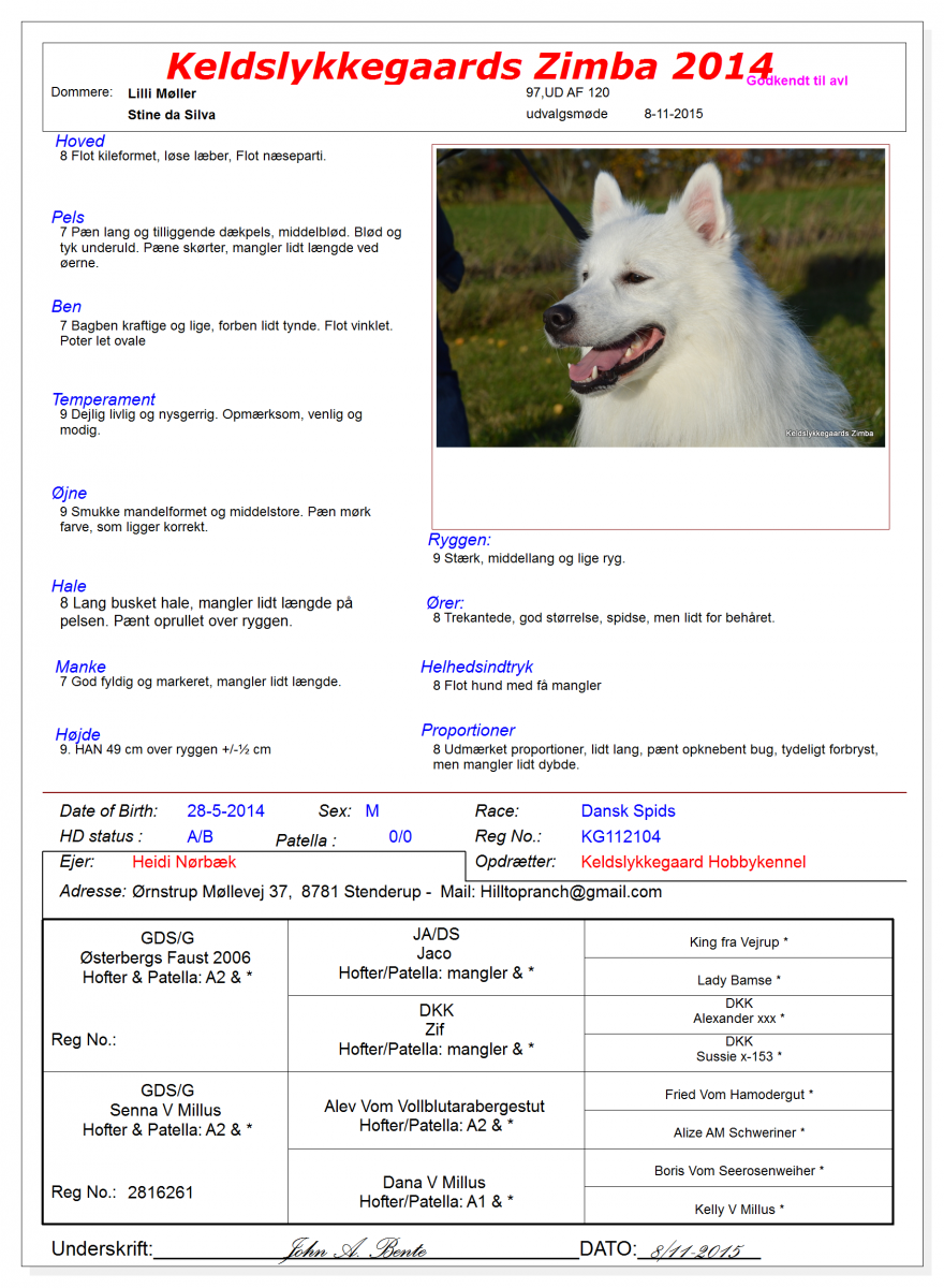 Zimba blev d. 8. november 2016 godkendt til avl.