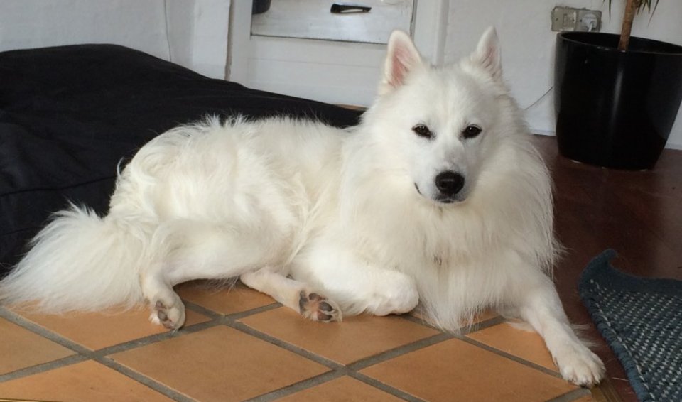 Hunden Den Danske SpidsDansk Spids er af racen spidshund. Den er en af kun fire helt rene danske hunderacer. Hannerne må ikke være højere end 50 cm. i skulderhøjde, tæverne lidt mindre. Pelsen er ikke helt hvid, men cremefarvet. Pelsens farve bliver lidt mørkere som hunden bliver ældre. Ældre Danske Spids hunde kan blive næsten brune. Den har halvlang pels med lidt manke og flot busket hale, der bæres oprullet på ryggen. Halen hænger dog ofte ned, når hunden ikke er i bevægelse. Dette er ikke nogen fejl, men næsten et særligt kendetegn på Den danske Spids. Ansigtet og benene er korthåret, bortset fra faner på bagsiden af benene. Benene er ikke kraftige, men heller ikke spinkle. Øjnene er brune, og snuden er brun, sommetider næsten lysebrun. Den brune snude kommer med alderen. Som hvalpe har de sorte snuder, men de fleste får den brune farve. En helt igennem fantastisk familiehund, som værner om sin nærmeste. Den kan være lidt vagtsom over for fremmede, men det ligger til spidshunde. Før i tiden brugte man racen til at passe på børn, det var før folk fik TV. Racen er speciel velegnet til lydighedstræning og agility. |